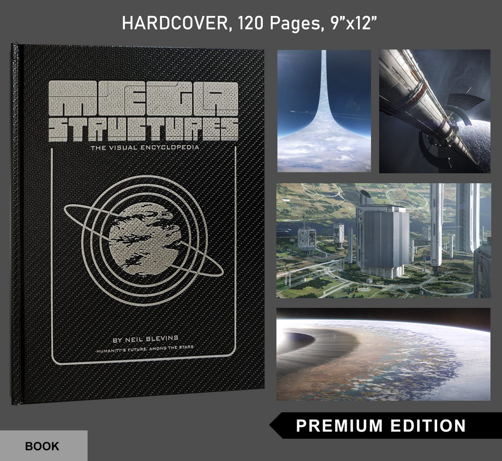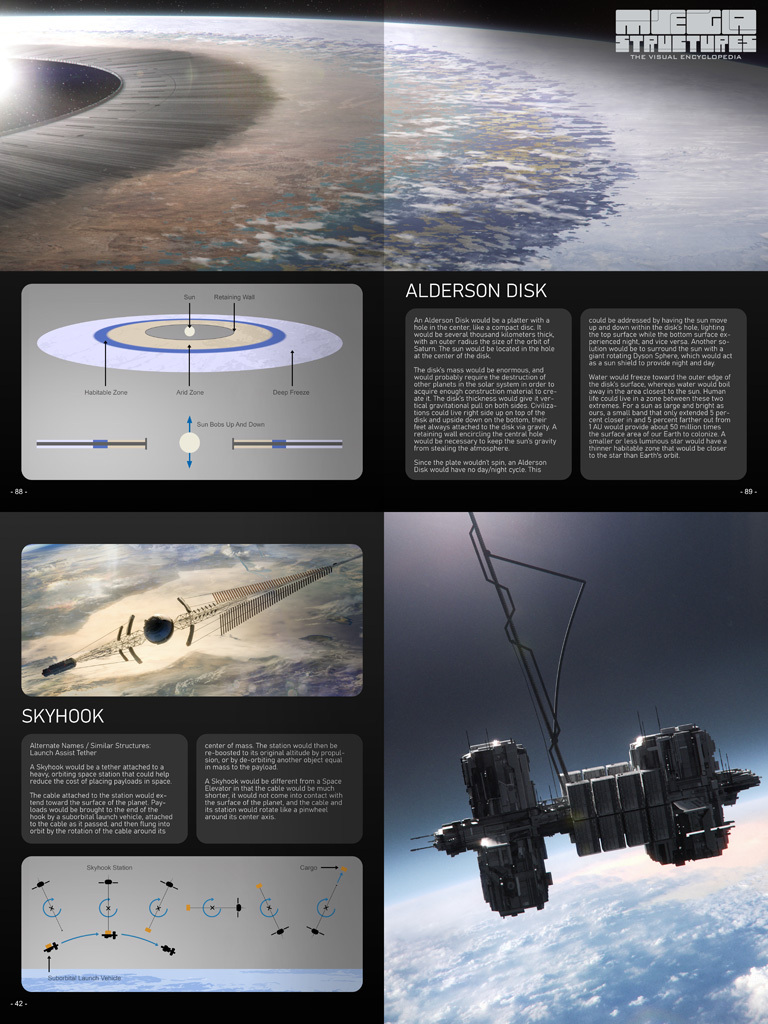 "Megastructures: The Visual Encyclopedia" is part science book, part inspirational artbook. It contains everything from orbiting space habitats to solar system spanning stellar engineering projects. Each of the 39 structures in the encyclopedia includes a scientific explanation, followed by paintings and diagrams that bring the concept to life.